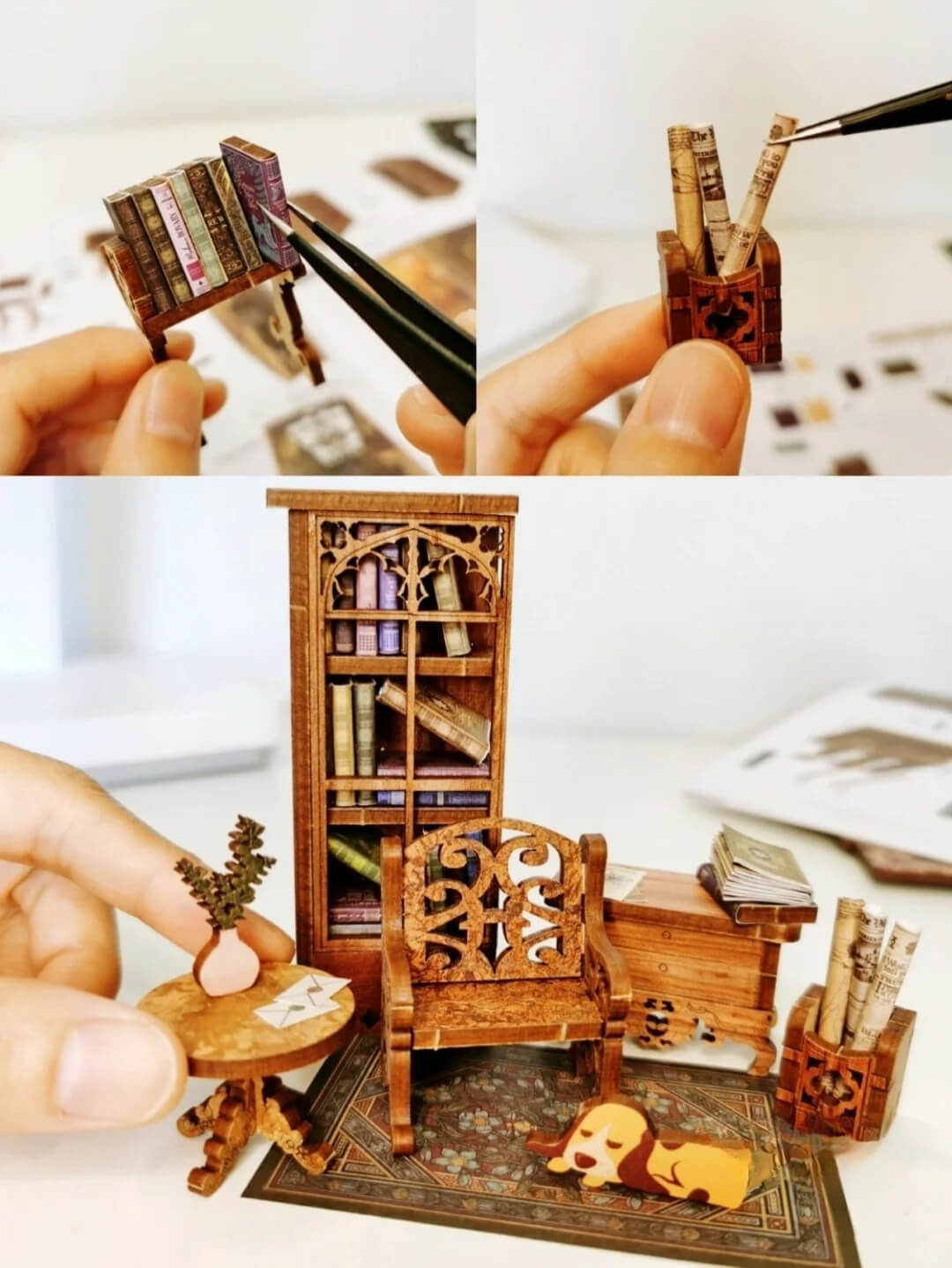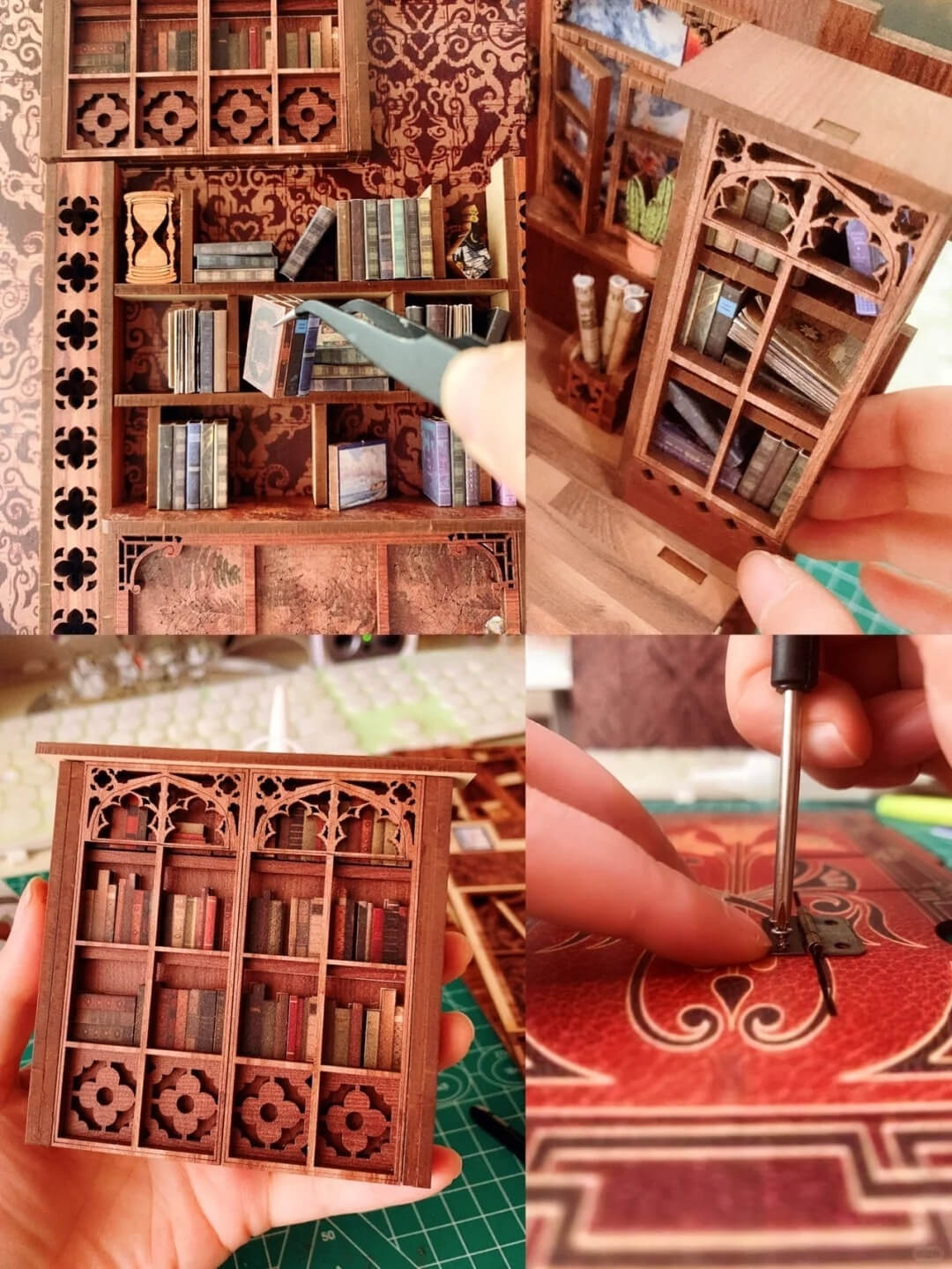 This is a DIY kit, including all the materials needed to assemble the book nook shown in the picture. However due to transportation limitation, battery and glue might not be included. Everything requires assembly. This is NOT a finished product. Dive into the joy of crafting and create your own unique kit!