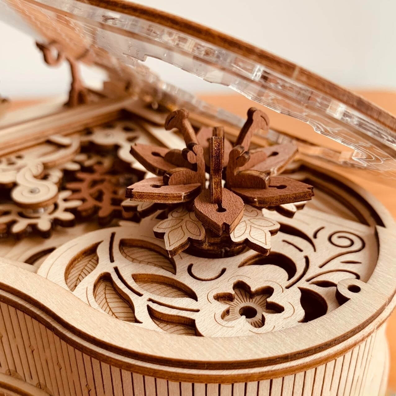 - Crystal-Patterned Lid: Crafted from transparent acrylic, the lid features intricate patterns that mimic the allure of crystal, adding an element of glamour and sophistication to this enchanting music box.