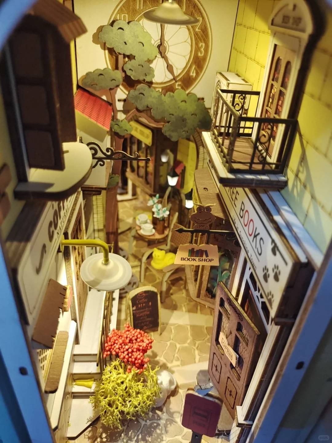 Once assembled, this book nook becomes a unique and exquisite decoration for your bookshelf or office desk. Watch as it comes to life in the dark with warm lights, creating a mesmerizing ambiance that adds warmth and charm to any room.