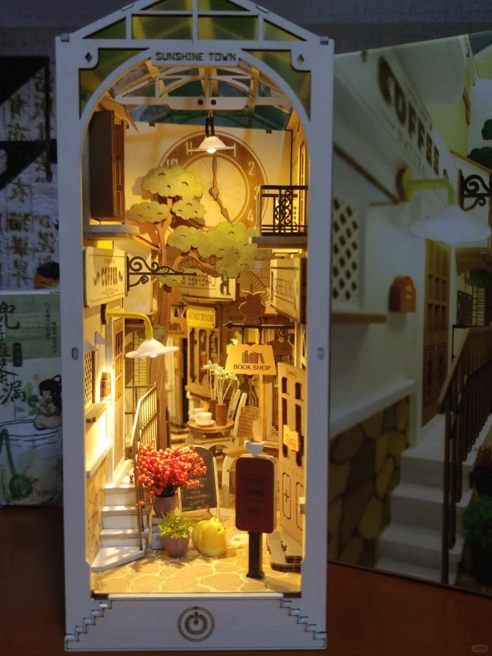 Immerse yourself in the enchanting world of Sunshine Town with our creative 3D wooden DIY miniature house. This self-assembly book nook kit provides everything you need to build a mini-town scene, complete with stores, roads, trees, clocks, and more. Perfect for both kids and adults, this easy and fun-to-build project promises hours of entertainment and creativity.